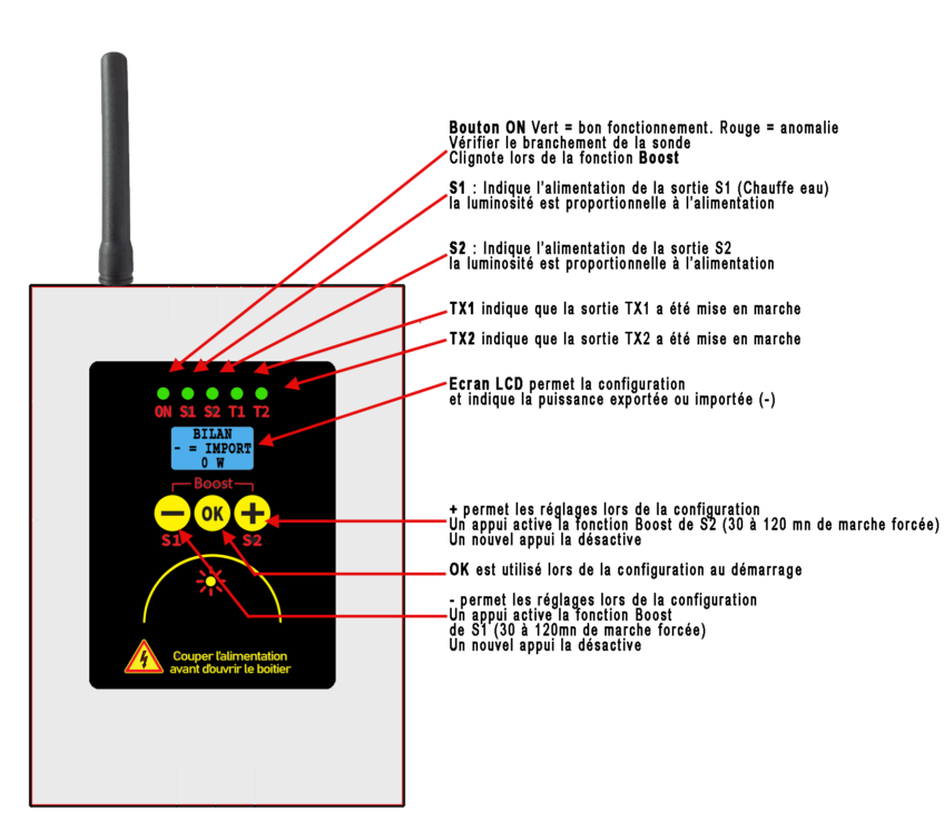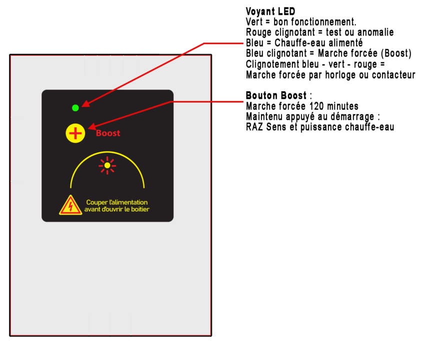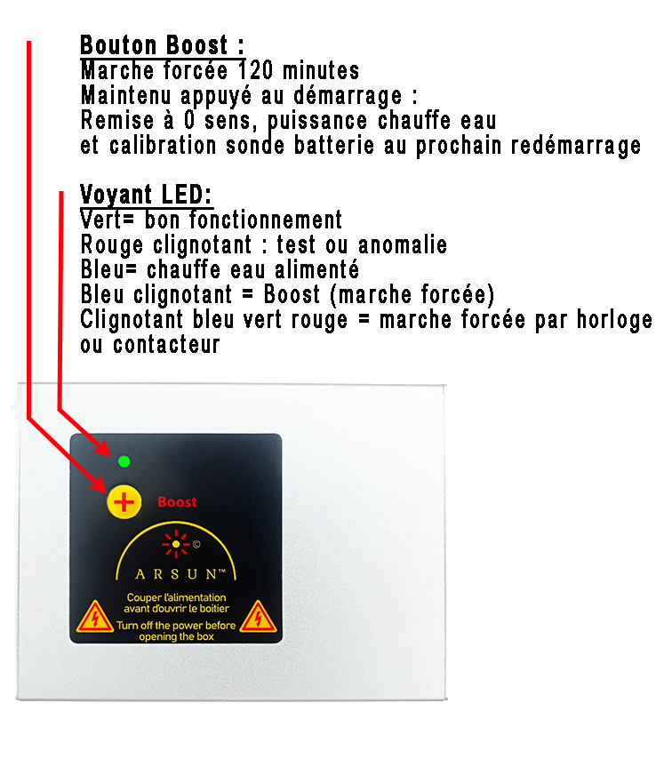 Une fonction BOOST permet d'alimenter votre chauffe eau même en l'absence de production photovoltaïque (P.V.).